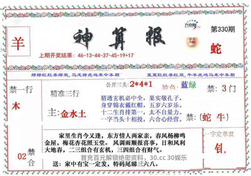 330期:绝杀三肖【蛇虎鸡】开马36准